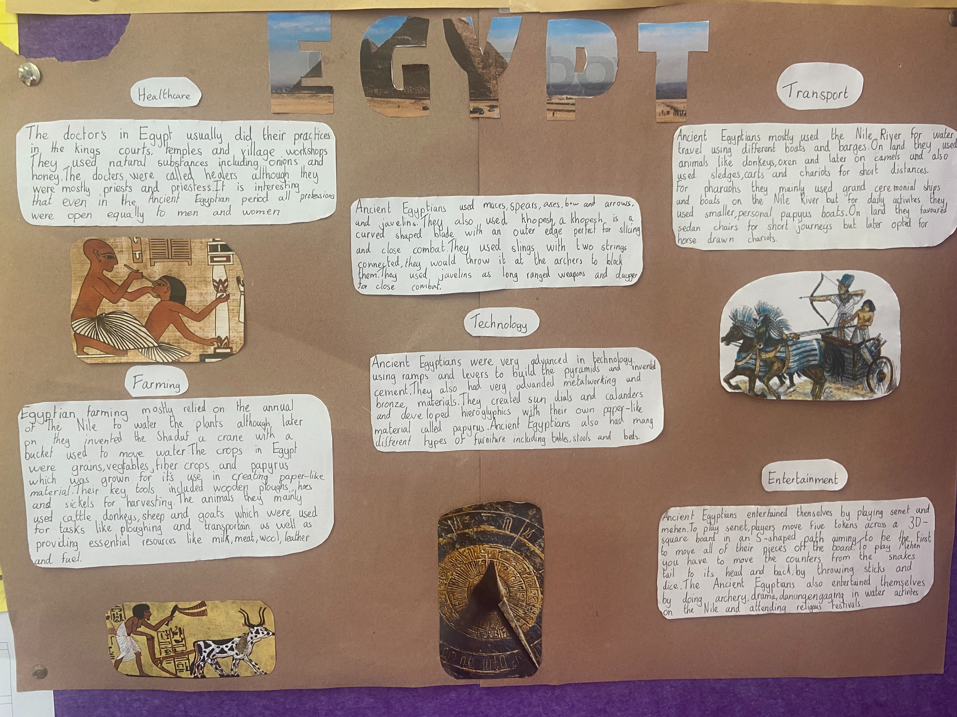 Our projects on ancient Egypt and pottery was ABSOLUTELY brilliant! For our pottery we sculpted pyramids, tombs, bowls and so much other stuff! We had lots of fun making these AMAZING pieces of art.